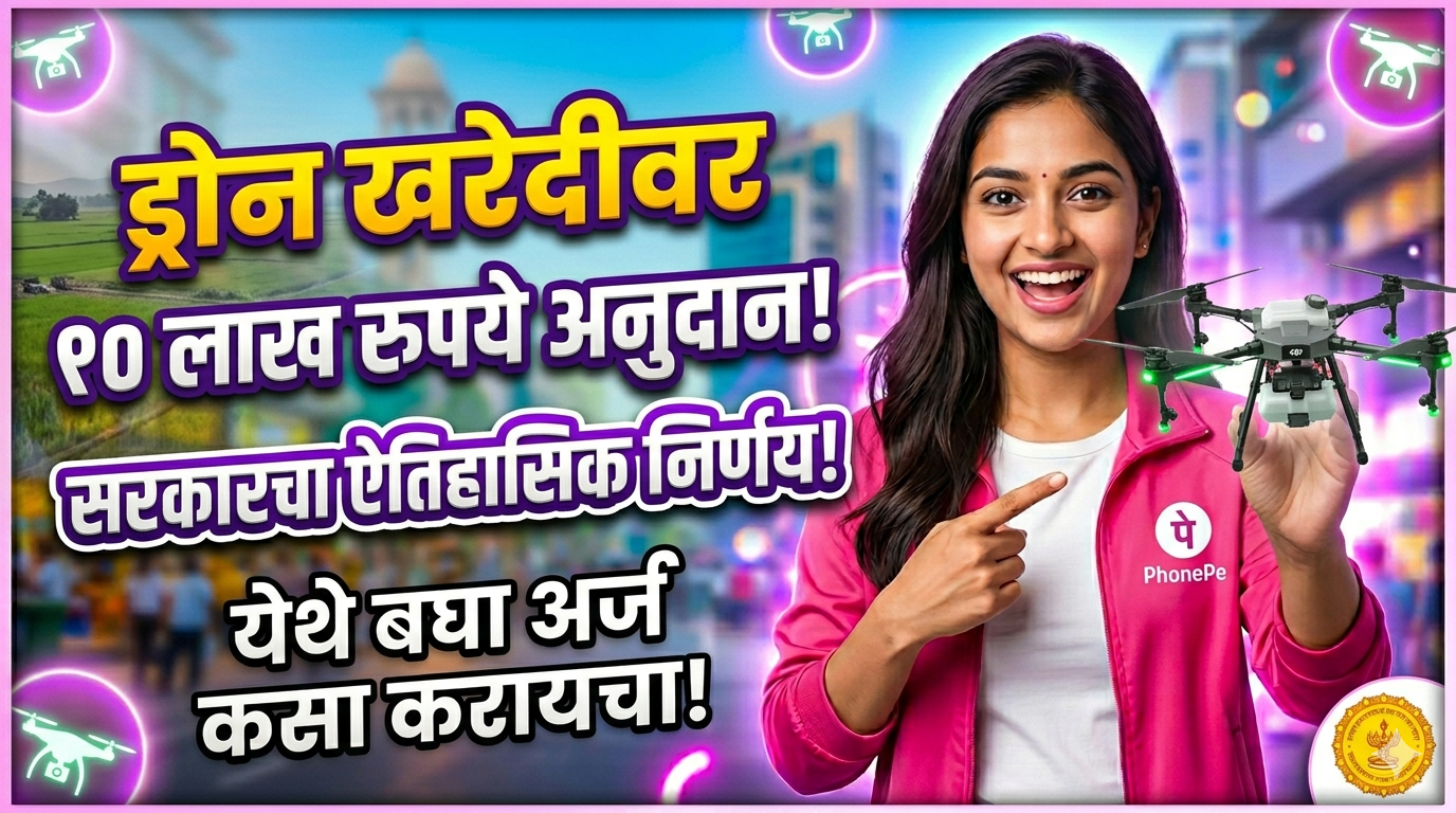 महिला बचत गट (नमो ड्रोन दीदी): केंद्र सरकारच्या नवीन योजनेअंतर्गत, निवडक महिला बचत गटांना ड्रोन खरेदीसाठी ८०% अनुदान (कमाल ८ लाख रुपये) मिळते.